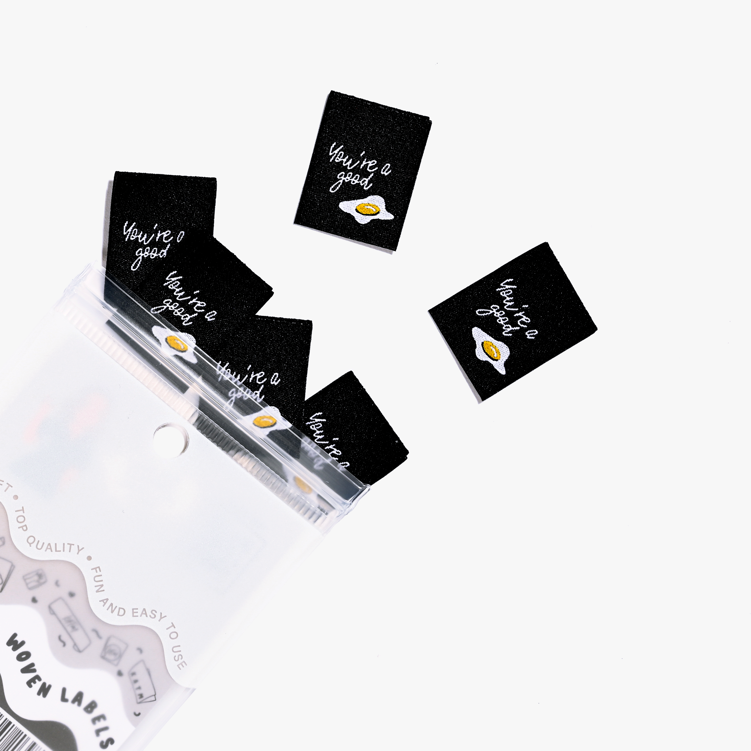 How to attach: This centre fold label is ideally sewn into the garment (Either inside or displayed visibly) by inserting into a seam allowance or facing.