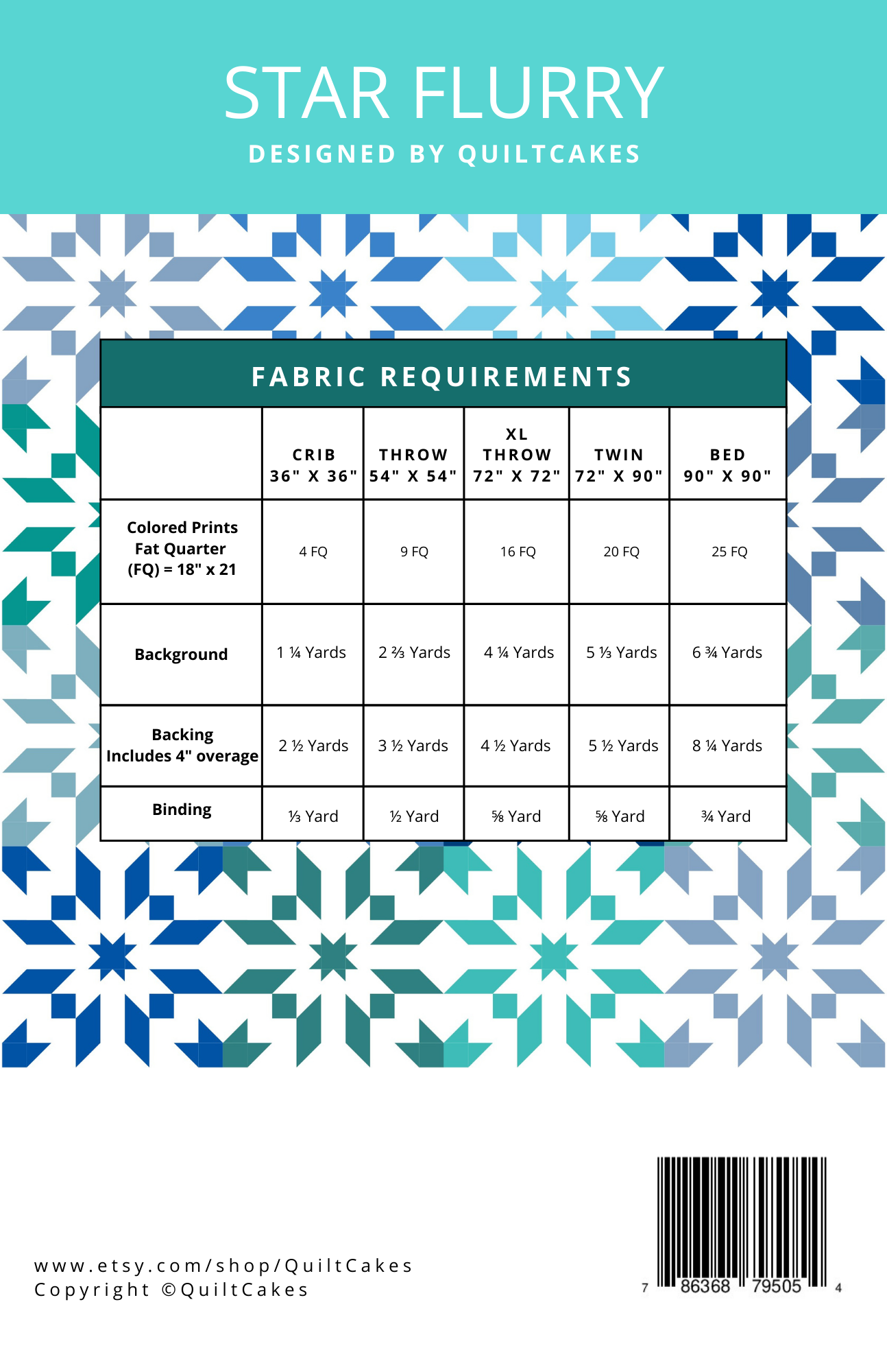 QuiltCakes - Star Flurry Quilt Pattern Printed