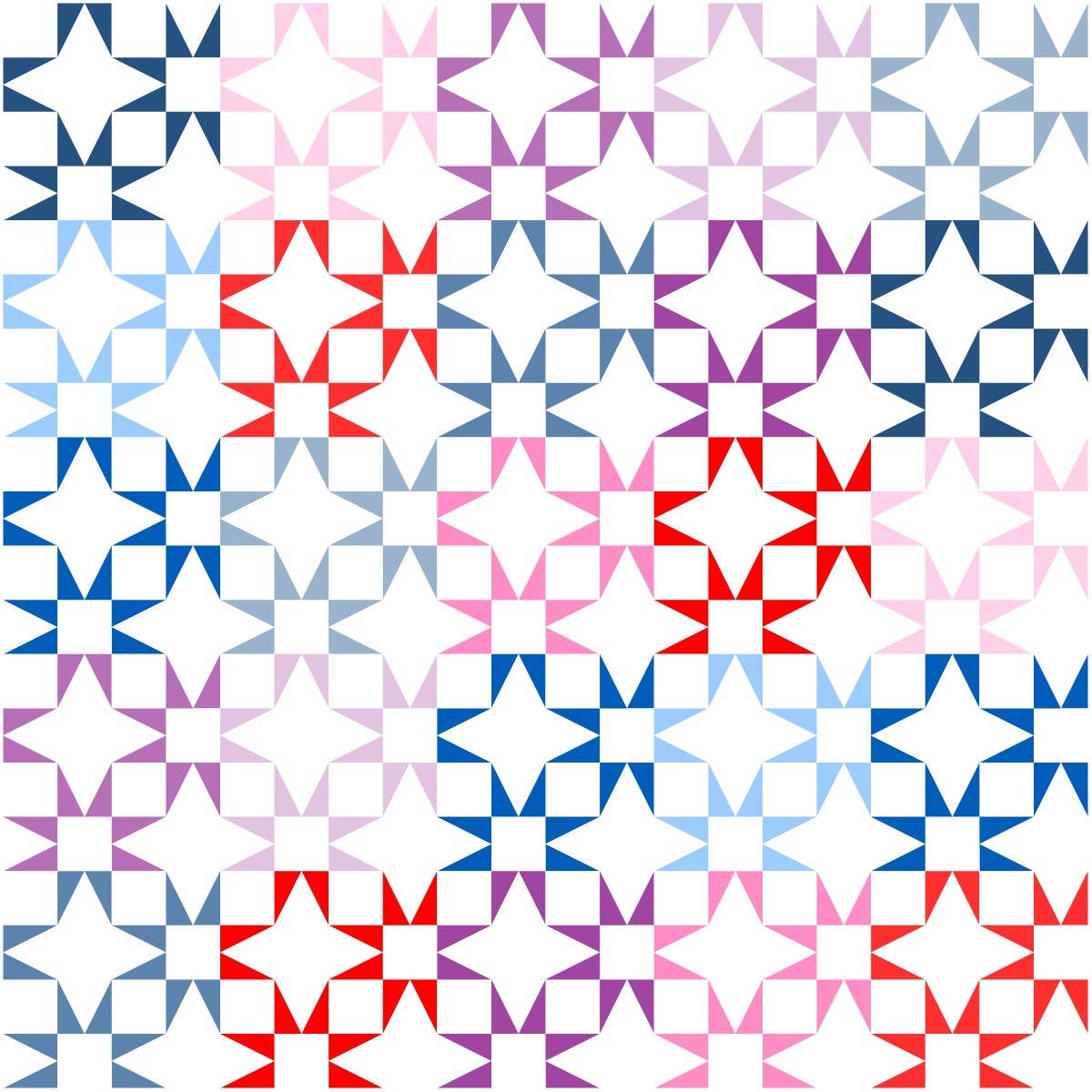 Pattern is fat quarter friendly and also includes bonus charts for scrappy use of charm squares, layer cakes and jelly rolls.