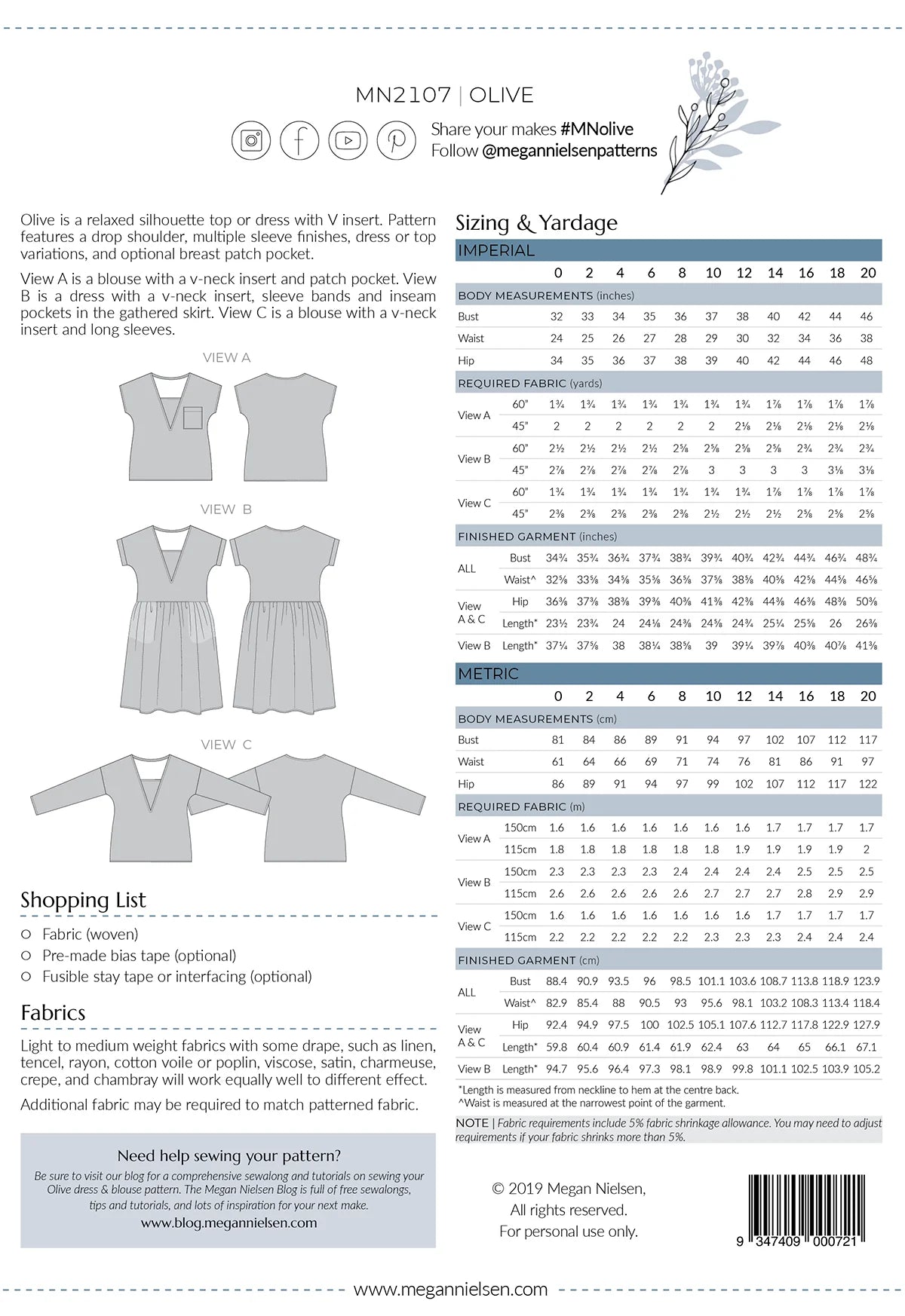 Megan Nielsen Patterns - Olive Dress & Top pattern